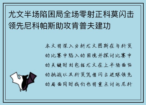 本文将分析2025赛季意甲联赛乌迪内斯主场对阵莱切的比赛中,上半场乌迪内斯凭借凯南·戴维斯和卡尔斯特伦的进球以2-0领先的局面。我们将从四个方面详细探讨这一场比赛的上半场表现:一是乌迪内斯的进攻威胁与球队整体配合;二是莱切的防守问题及其应对策略;三是凯南·戴维斯和卡尔斯特伦个人表现的关键影响;四是比赛局势如何为乌迪内斯占据优势并可能影响下半场走势。通过这些方面的分析,本文将为读者呈现比赛的深度解读...